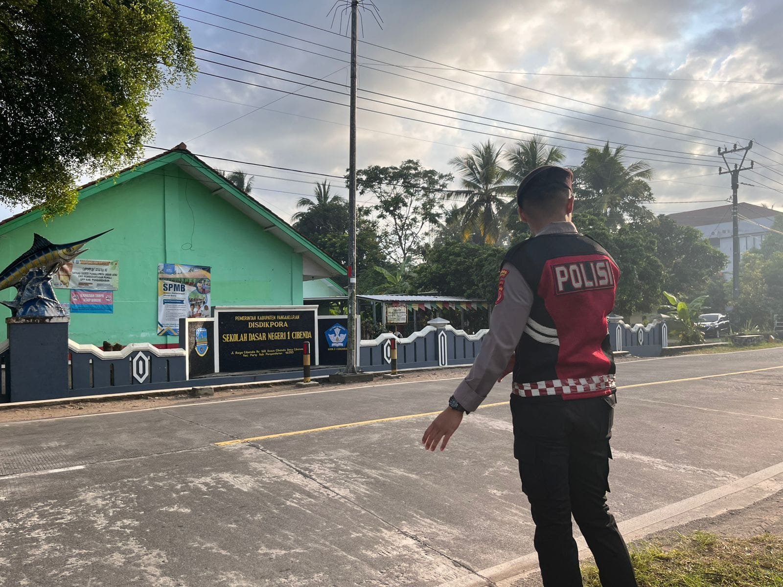 Pangandaran — Dalam upaya menciptakan keselamatan dan ketertiban lalu lintas di lingkungan sekolah, anggota Polres Pangandaran melaksanakan kegiatan pengaturan lalu lintas (Gatur) di depan SD Negeri 1 Cibenda, Kecamatan Parigi, Kamis pagi 04/09/2025).