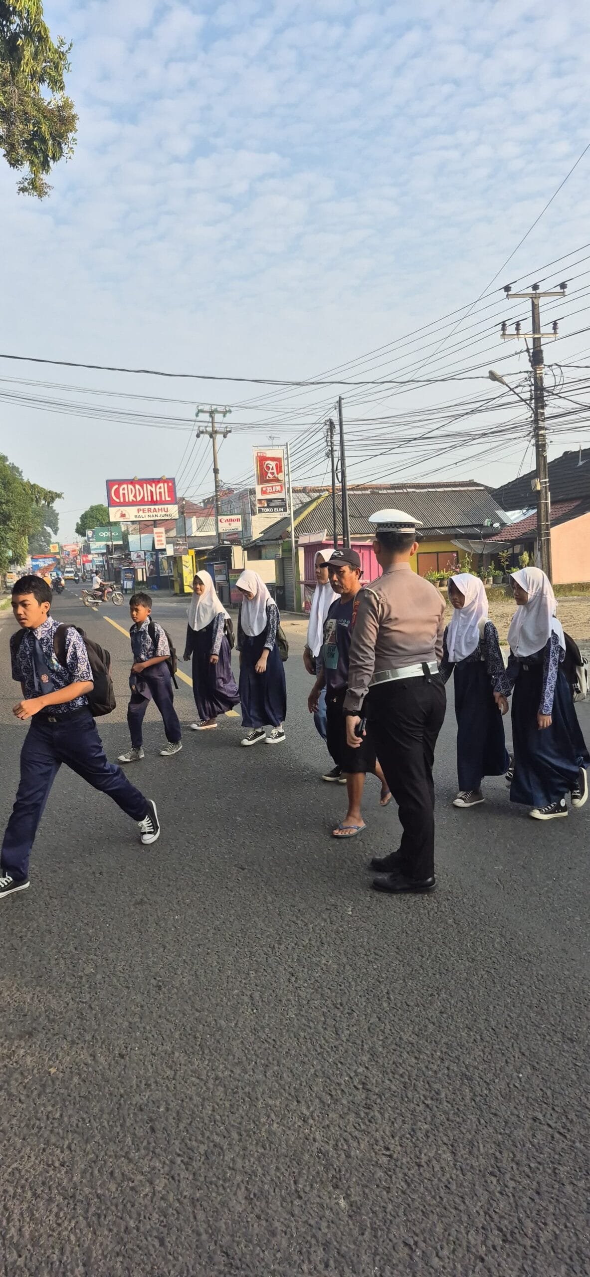 Kawasan ini diketahui sebagai salah satu titik yang ramai aktivitas, terutama pada pagi hari ketika para siswa berangkat sekolah. Dalam kegiatan tersebut, petugas tampak sigap mengatur kendaraan yang melintas, membantu siswa menyeberang jalan, serta mengimbau para pengendara agar lebih berhati-hati saat melewati area sekolah.