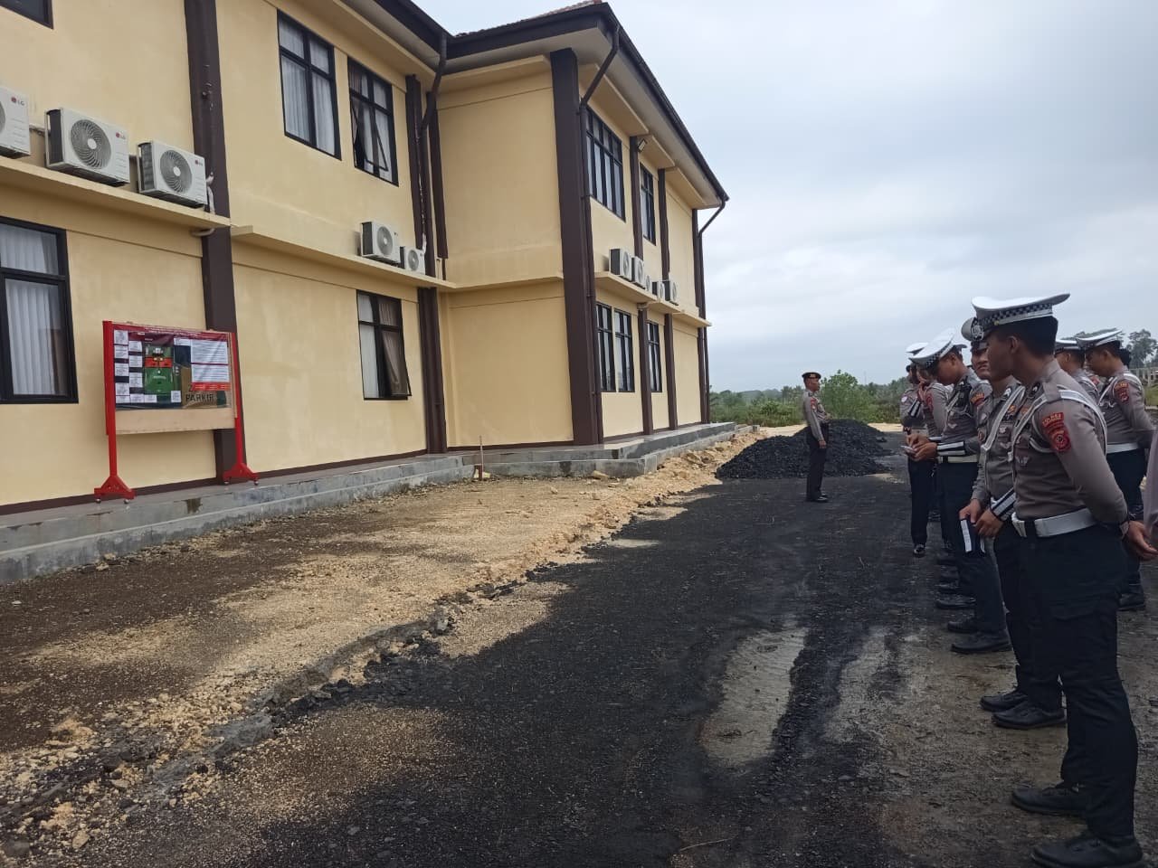 Pembangunan Mako Polres Pangandaran terus menunjukkan perkembangan positif. Hingga hari ini, beberapa bagian jalan di area mako sudah mulai diaspal. Salah satunya terlihat di depan pintu masuk gedung utama, yang kini telah rapi dengan lapisan aspal dan siap dilalui kendaraan.
