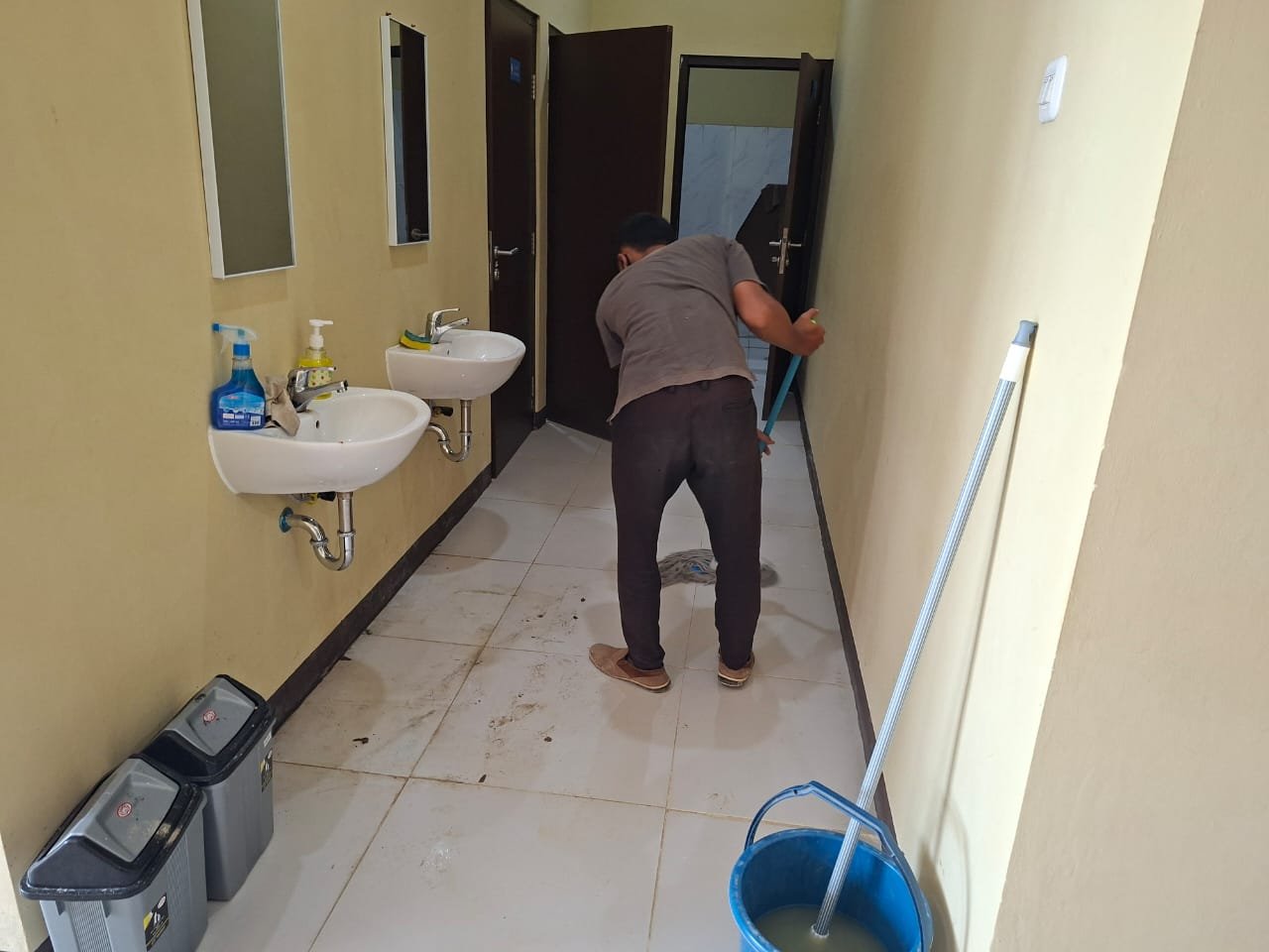Terlihat para petugas kebersihan secara rutin dan teliti melakukan pembersihan toilet di lingkungan Mako Polres Pangandaran. Mulai dari lantai, dinding, hingga perlengkapan toilet dibersihkan secara menyeluruh guna memastikan kebersihan dan kenyamanan tetap terjaga setiap saat. Hal ini mencerminkan keseriusan Polres Pangandaran dalam memperhatikan fasilitas pendukung pelayanan publik.