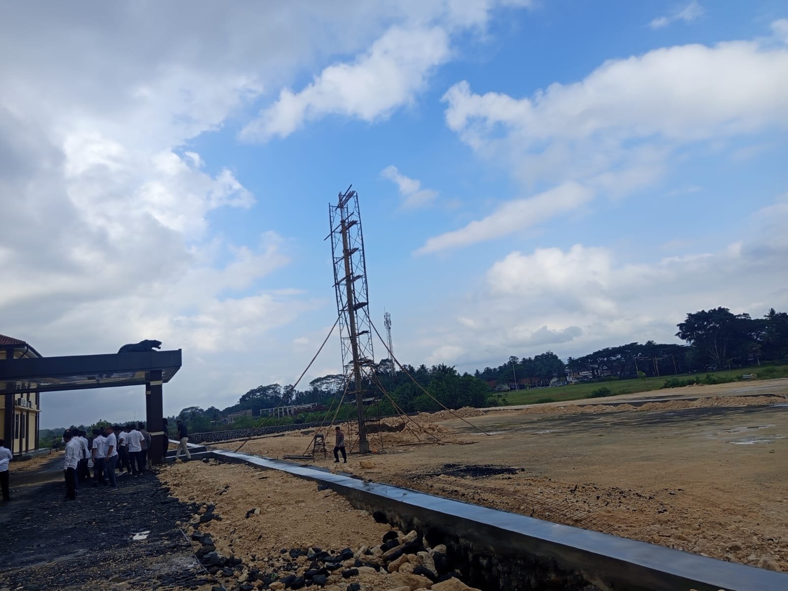 Tiang bendera tersebut nantinya akan menjadi simbol kehormatan dan semangat nasionalisme bagi seluruh personel Polres Pangandaran. Pemasangan dilakukan dengan teliti oleh tim pelaksana pembangunan untuk memastikan kekokohan dan ketepatan posisinya.