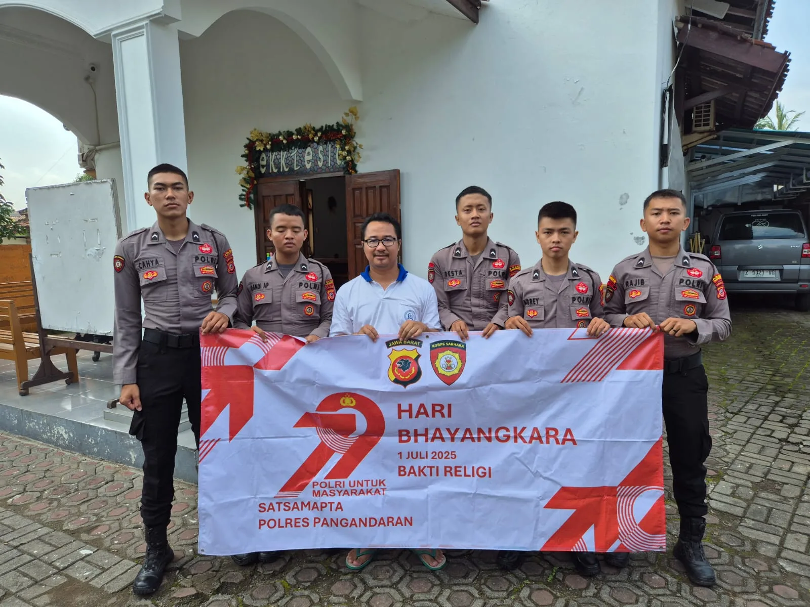 Suasana sejuk dan tenang terlihat di halaman Gereja GPDI Parapat Pangandaran pada Sabtu, 21 Juni 2025. Sejak pagi, personel Sat Samapta Polres Pangandaran telah hadir untuk melaksanakan kegiatan bakti sosial berupa pembersihan lingkungan gereja. Kegiatan ini dimulai pukul 09.00 WIB dan berlangsung hingga area tempat ibadah tersebut bersih dan nyaman untuk digunakan kembali.