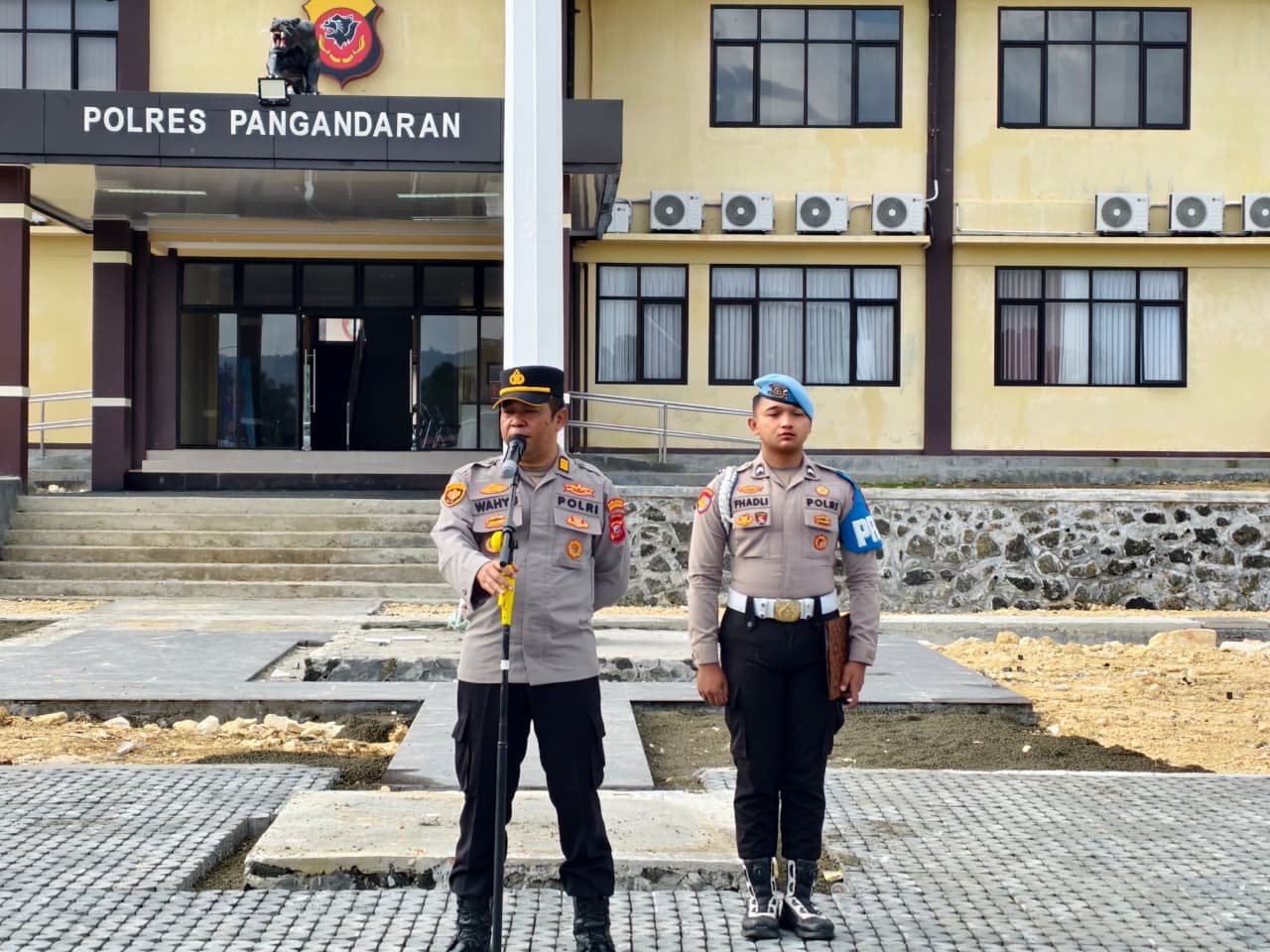 Pangandaran – Pimpinan Kepolisian Resor (Polres) Pangandaran tidak hanya fokus pada aspek operasional dan teknis, namun juga memperhatikan pembinaan mental dan spiritual anggota. Hal ini terlihat jelas saat Apel Pagi yang digelar pada Senin, 1 Desember 2025, pukul 08.00 WIB, yang dipimpin oleh Kabag Log Polres Pangandaran, AKP Wahyu Hidayat, S.H. Apel yang dihadiri oleh seluruh jajaran, termasuk para Kepala Satuan dan Perwira, ini menjadi forum untuk menguatkan pondasi moral dalam pelaksanaan tugas.
