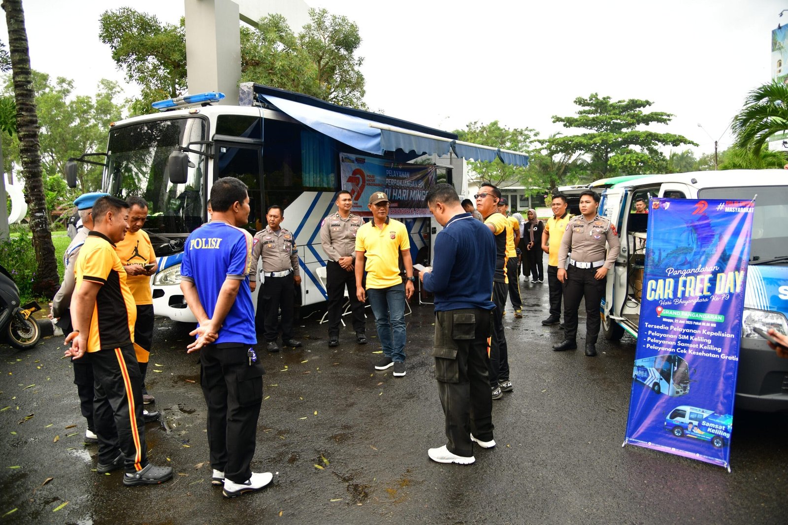 Dipimpin Kapolres AKBP Mujianto, kegiatan ini menjadi sarana efektif dalam mendekatkan Polri kepada masyarakat. Warga yang sedang berolahraga turut berpartisipasi dalam layanan interaktif yang disediakan.