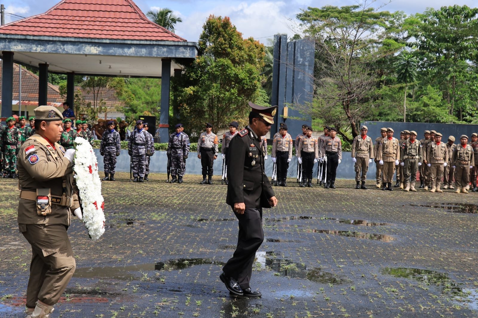 Sejumlah personel dari Satuan Samapta Polres Pangandaran serta personel gabungan staf dan Polsek jajaran Polres Pangandaran juga turut serta dalam upacara. Kehadiran mereka menunjukkan soliditas dan rasa hormat yang mendalam dari seluruh jajaran kepolisian di wilayah Pangandaran terhadap para pahlawan.