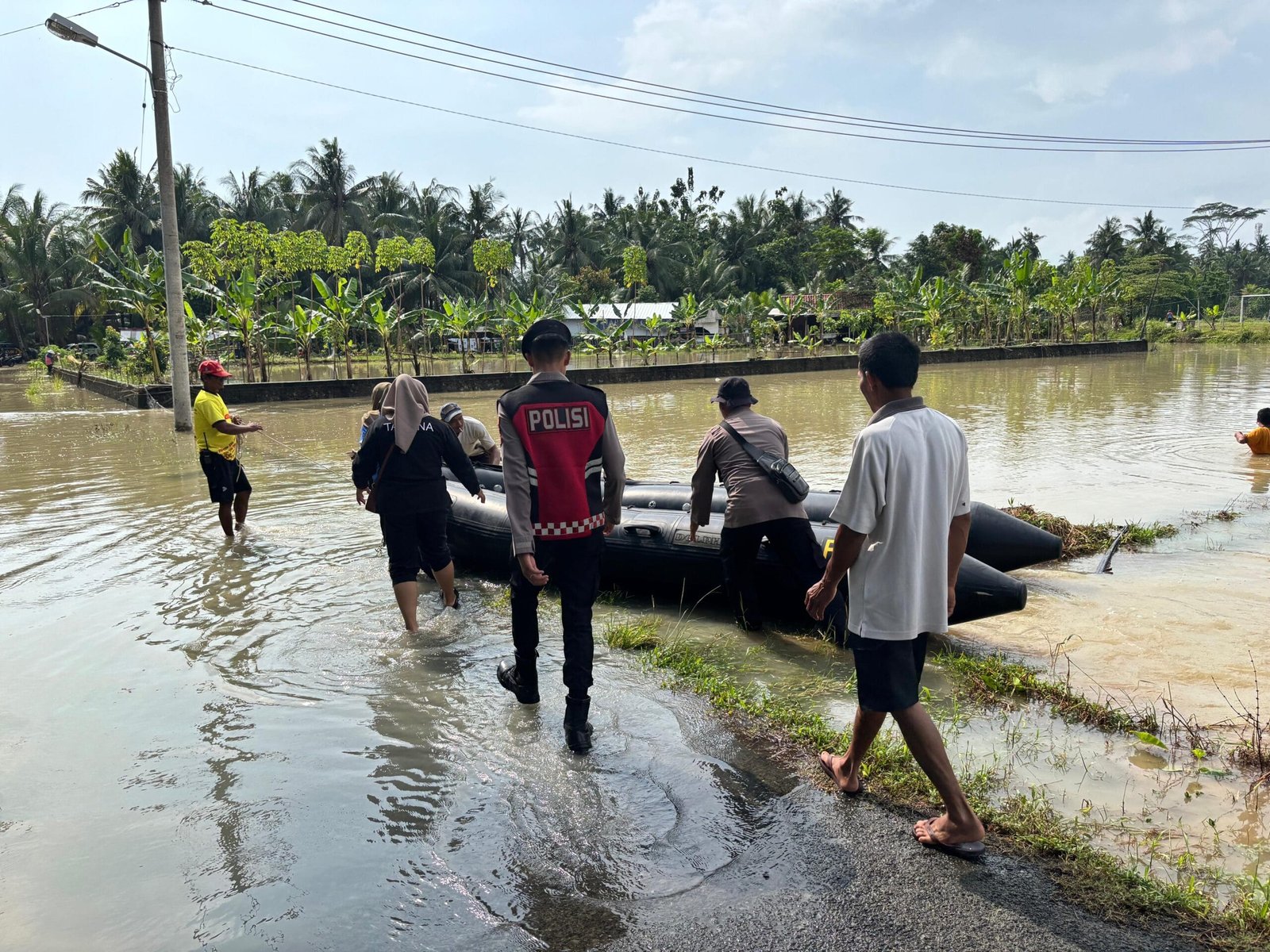 Petugas bersenjata ditempatkan di daerah yang ditinggalkan warga mengungsi. Patroli malam juga dijalankan agar situasi tetap kondusif hingga banjir benar-benar surut.