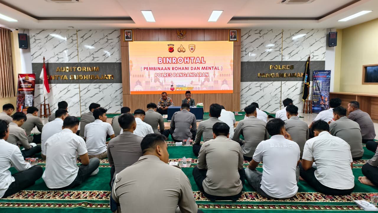 PANGANDARAN – Suasana khidmat menyelimuti Aula Mapolres Pangandaran pada Rabu pagi (8/4). Jajaran Polres Pangandaran melaksanakan agenda rutin Binrohtal yang dipimpin oleh Wakapolres Kompol Usep Supiyan, S.Sos., M.M. sebagai bagian dari program peningkatan SDM yang unggul secara moral.
