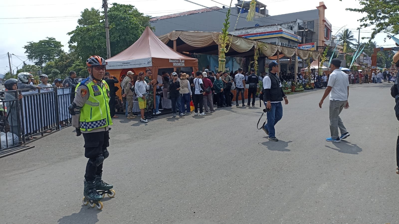 Dalam pelaksanaan pengamanan, Kapolsek AKP Nandang Rokhmana tampak turun langsung ke lapangan, memimpin personel gabungan dari Polsek Pangandaran dan instansi terkait lainnya. Menariknya, pada kesempatan tersebut Kapolsek turut memantau jalannya kegiatan dengan menggunakan sepatu roda, sebagai bentuk inovasi dan pendekatan humanis kepada masyarakat, sekaligus menambah keakraban antara aparat kepolisian dan warga yang hadir.