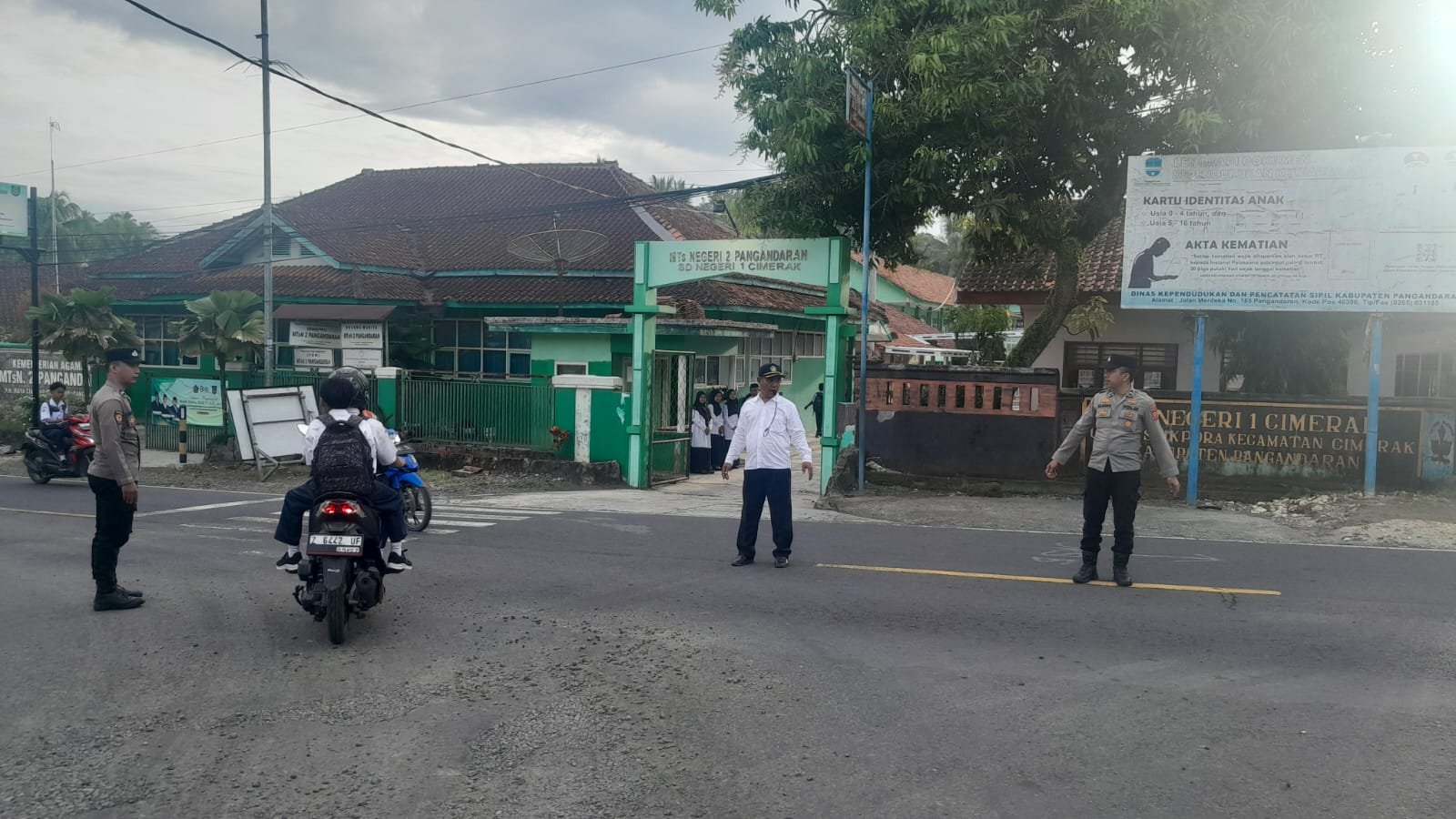 Cimerak – Personel Polsek Cimerak melaksanakan kegiatan pengaturan lalu lintas (gatur lalin) di SP3 Cimerak pada Senin (19/1/2026) pagi. Kegiatan ini bertujuan memberikan pelayanan mobiltas kendaraan yang lancar dan menyebrangkan siswa sekolah.