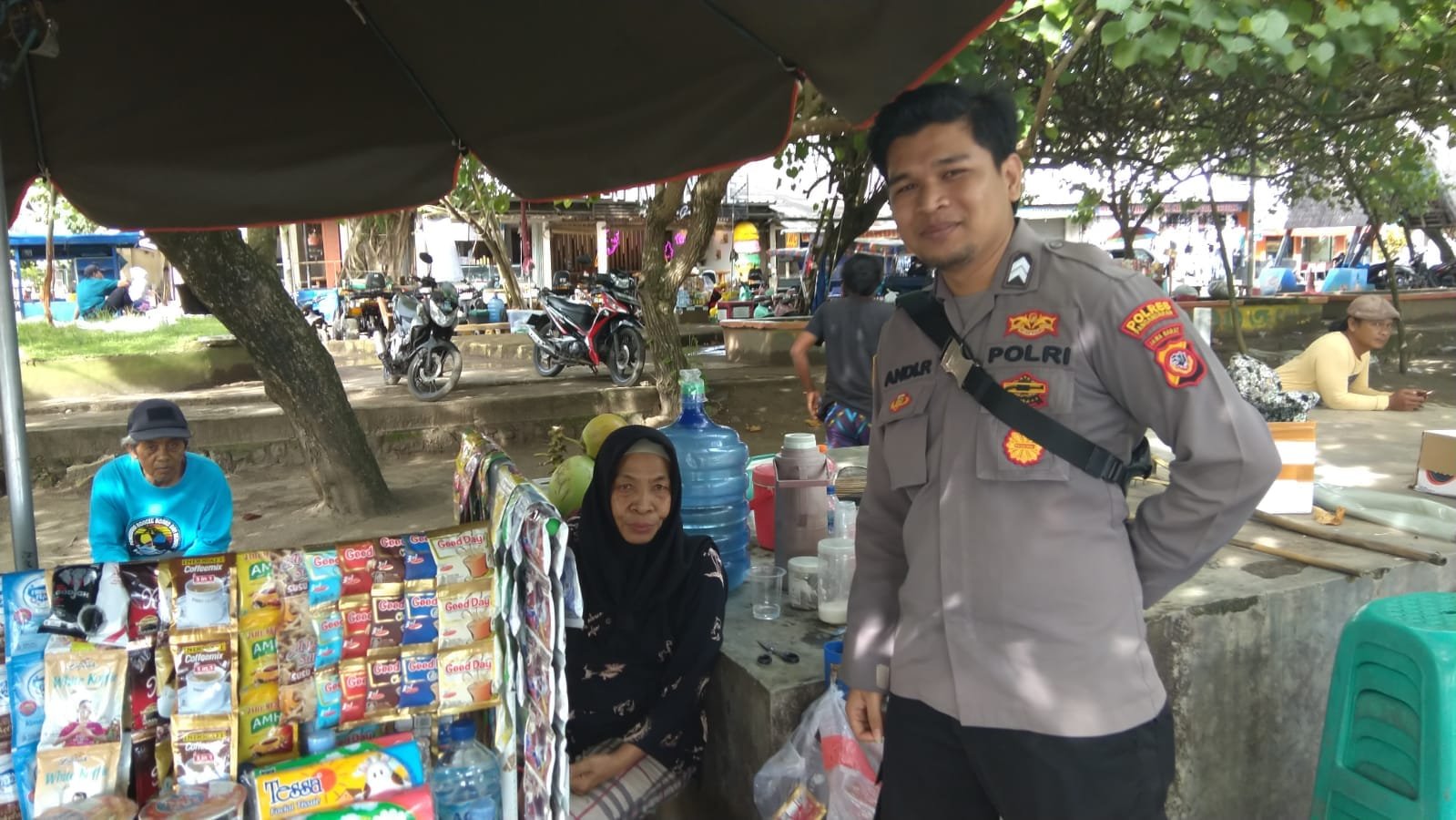 Selain menyampaikan pesan-pesan kamtibmas, Briptu Andi juga menjalin komunikasi dengan petugas parkir, pedagang, dan pelaku usaha wisata lainnya agar turut serta menjaga ketertiban di lingkungan masing-masing.