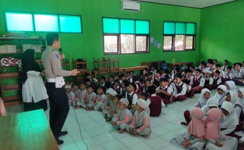 Pangandaran – Panit Lantas Polsek Pangandaran Aipda Awan Agus Gunawan, S.H melaksanakan kegiatan sosialisasi tentang pencegahan bullying dan pentingnya tertib berlalu lintas. Kegiatan ini berlangsung pada Senin, 08 September 2025, bertempat di MI Al Musri Babakan Pangandaran, dimulai pukul 09.00 WIB hingga selesai.