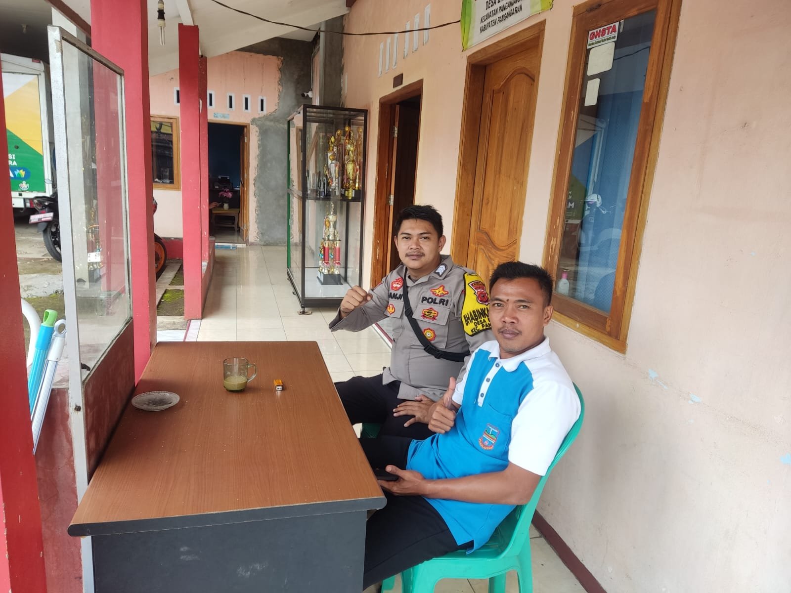 Kegiatan tersebut merupakan bagian dari upaya preventif Polri dalam mendekatkan diri kepada masyarakat serta memperkuat hubungan kemitraan antara aparat kepolisian dengan warga. Dalam suasana yang penuh keakraban, Brigadir Fanji Eka P berdialog langsung dengan perangkat desa dan masyarakat yang hadir, guna menyerap berbagai informasi serta perkembangan situasi di lingkungan setempat.