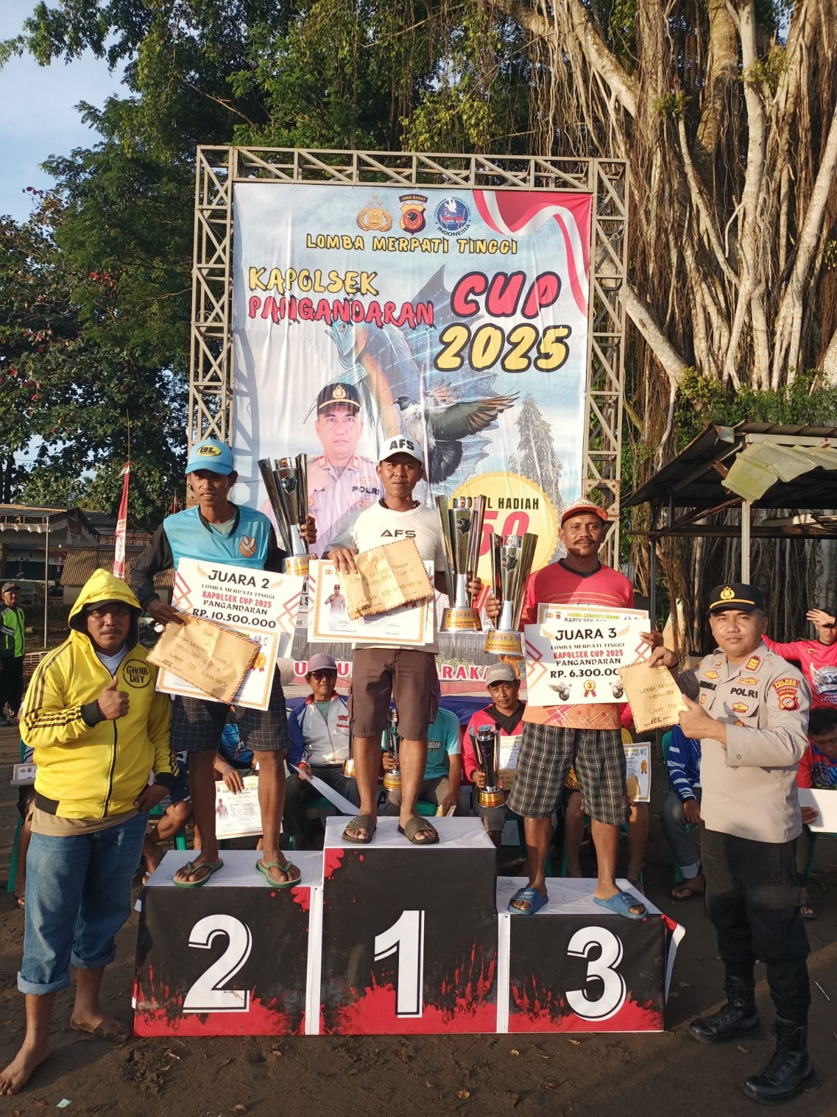Dalam sambutannya, Kapolsek Pangandaran menyampaikan bahwa perlombaan ini bukan sekadar ajang kompetisi, tetapi juga merupakan sarana untuk mempererat tali silaturahmi antara masyarakat, komunitas penghobi burung, dan pihak kepolisian. Kapolsek menegaskan bahwa kegiatan ini diharapkan mampu menjadi wadah positif bagi para pecinta merpati tinggi untuk menunjukkan kemampuan terbaik merpati mereka sekaligus memperkuat hubungan kemitraan antara Polri, khususnya Polsek Pangandaran, dengan masyarakat. Beliau juga menyampaikan rasa terima kasih kepada panitia, para peserta, serta seluruh pihak yang telah mendukung terselenggaranya acara sehingga dapat berjalan dengan sukses.