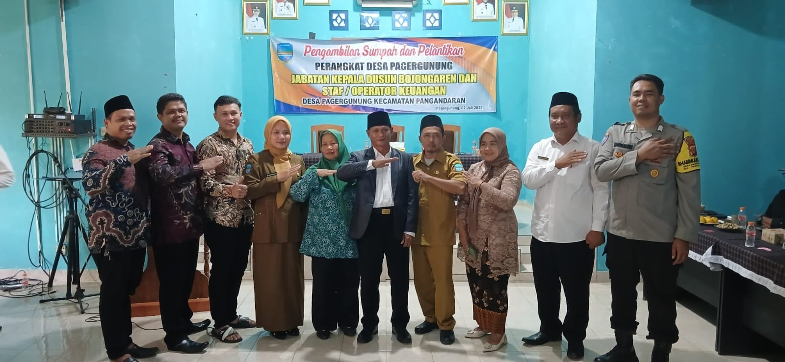 Pangandaran – Pada hari Rabu, 2 Juli 2025 pukul 08.00 WIB, Bhabinkamtibmas Desa Pagergunung Brigadir Wahyu Rohim, S.H. menghadiri kegiatan pengambilan sumpah dan pelantikan perangkat desa yang digelar di Balai Desa Pagergunung, Kecamatan Pangandaran.