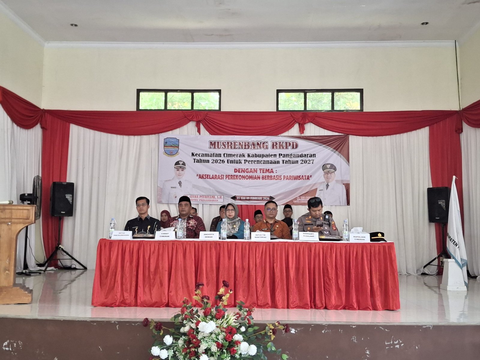 Kecamatan Cimerak, Pangandaran – Kamis (05/02/2026), Gedung Islamic Center Kec. Cimerak menjadi saksi pelaksanaan Musyawarah Perencanaan Pembangunan (MUSRENBANG) RKPD Sidang Pleno 1 Tingkat Kec. Cimerak Kabupaten Pangandaran Tahun 2026 untuk Perencanaan Tahun 2027. Acara yang bertemakan “Akselerasi Perekonomian Berbasis Pariwisata” ini dihadiri oleh sekitar 120 orang, termasuk pejabat pemerintah, tokoh masyarakat, dan perwakilan desa, dengan dukungan penuh dari Polsek Cimerak.