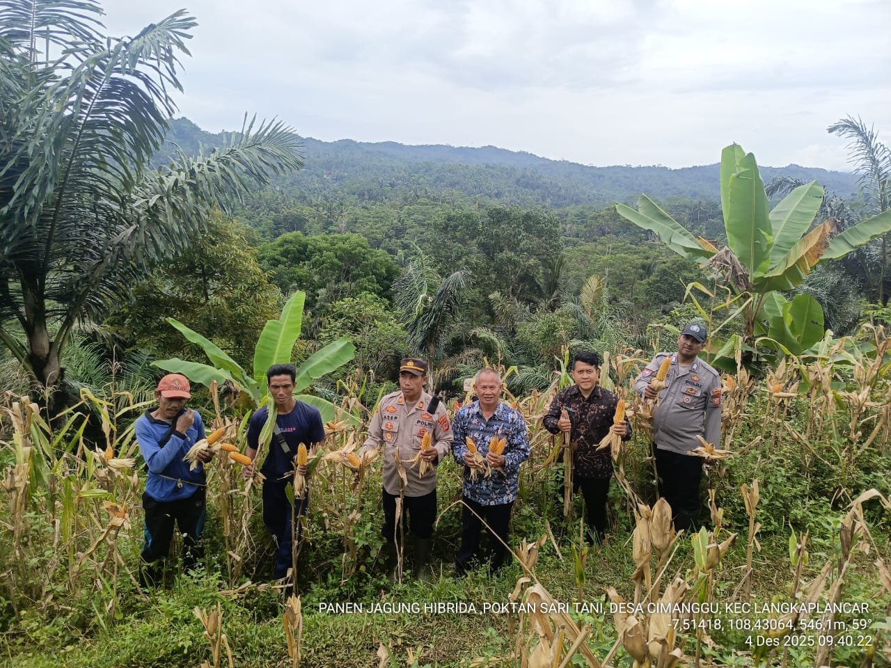 – Upaya memperkuat ketahanan pangan di wilayah Kabupaten Pangandaran kembali mendapat dorongan melalui panen jagung hibrida yang digelar Polsek Langkaplancar bersama unsur Forkopimcam, Kelompok Tani Sari Tani, serta BPPK Kecamatan Langkaplancar pada Kamis (4/12/2025) pagi.Panen berlangsung di lahan seluas 2 hektare yang berlokasi di Datar Pereng, Dusun Ciceuri, Desa Cimanggu, Kecamatan Langkaplancar. Dari total lahan tersebut, 1,5 hektare telah memasuki masa panen dengan estimasi hasil mencapai 1 ton pipil kering. Pendampingan yang dilakukan Polri melalui Polsek Langkaplancar ini menjadi bagian dari implementasi program ketahanan pangan yang tengah digencarkan pemerintah.Kegiatan panen turut dihadiri Camat Langkaplancar Drs. H. Acep Deni Firdaus, S.Sos., Kapolsek Langkaplancar AKP Asep Dadi Mulyawan, Bintara Ketahanan Pangan Brigpol Selmi Kardiana, Operator Ketahanan Pangan Bripda Dimas Heru, perwakilan BPPK Kecamatan Langkaplancar Sdr. Gara, Kepala Desa Cimanggu Sori Somantri, serta anggota Polsek Langkaplancar dan para petani Poktan Sari Tani.Selama kegiatan berlangsung, suasana panen berjalan lancar dan kondusif. Sinergi antara Polri dan kelompok tani ini diharapkan dapat terus berlanjut, sekaligus menjadi dorongan bagi peningkatan produktivitas pertanian dan kesejahteraan petani di wilayah Pangandaran.