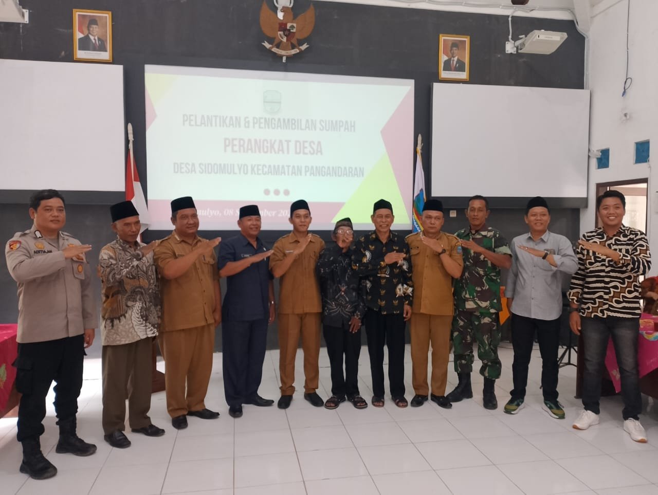 Pangandaran – Suasana khidmat menyelimuti Kantor Desa Sidomulyo Kecamatan Pangandaran pada Senin, 08 September 2025, saat berlangsungnya acara pelantikan dan pengambilan sumpah perangkat desa. Acara dimulai pukul 08.30 WIB dan dihadiri oleh berbagai unsur penting, mulai dari Camat Pangandaran, Kepala Desa Sidomulyo, Ketua BPD, Ketua MUI, Bhabinkamtibmas, Babinsa, hingga para tokoh masyarakat setempat. Kehadiran para undangan ini menjadi bukti nyata dukungan terhadap jalannya roda pemerintahan desa.