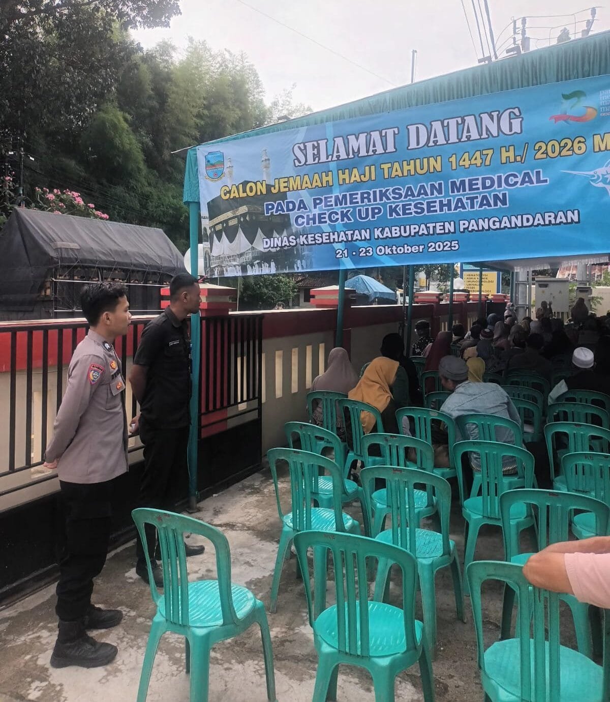 Pangandaran – Selasa (21 September 2025), anggota Polsek Pangandaran Briptu Dwike Hofidin melaksanakan kegiatan pengamanan pemeriksaan kesehatan (check up) bagi Calon Jamaah Haji Kabupaten Pangandaran Tahun 2025 yang bertempat di UPTD Labkesda Kabupaten Pangandaran. Kegiatan dimulai pukul 08.00 WIB dan berlangsung hingga selesai dengan situasi aman, tertib, dan kondusif.