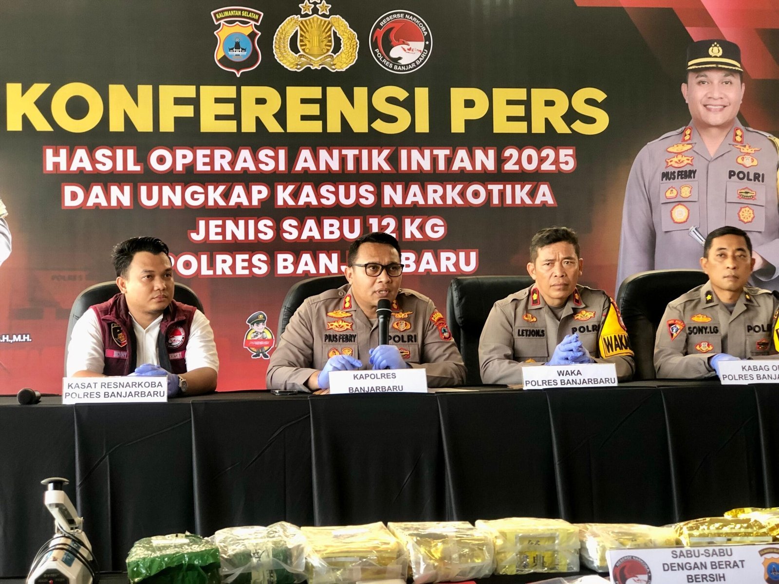 Banjarbaru – Satresnarkoba Polres Banjarbaru berhasil mengungkap peredaran narkotika dalam jumlah besar yang diduga terkait jaringan Fredy Pratama. Petugas mengamankan tiga pelaku beserta lebih dari 12 kilogram sabu selama Operasi Antik Intan 2025.