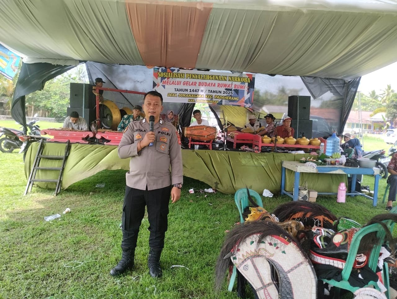 Pangandaran, 5 Juli 2025 — Dalam rangka kegiatan Gelar Budaya dan Ruwat Bumi Desa Sukanagara, Kecamatan Padaherang, Kabupaten Pangandaran, Bhabinkamtibmas Desa Sukanagara, BRIPKA Jaja Setia A., melaksanakan kegiatan sosialisasi tentang bahaya penyalahgunaan narkoba pada Sabtu (5/7) pukul 10.00 WIB hingga selesai.