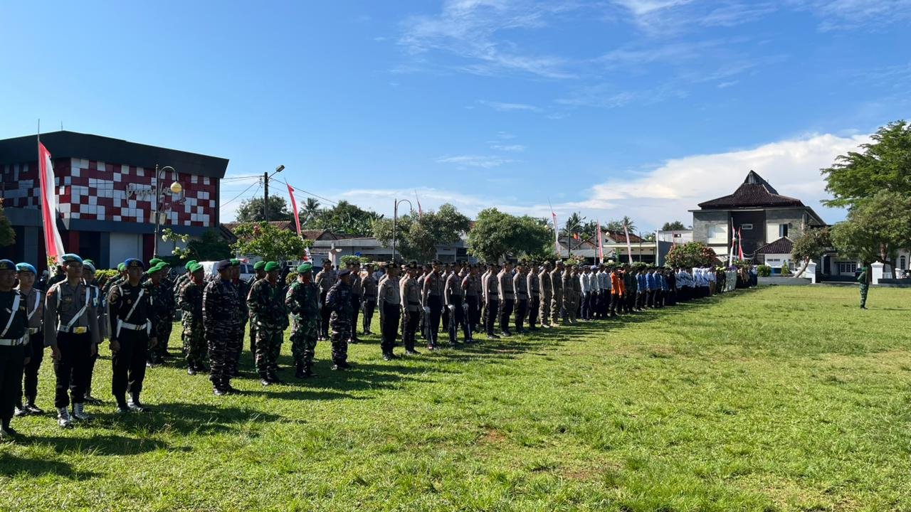 Kapten Inf M Erwin Madyaferi mengomandani upacara yang berjalan lancar. Momen inti meliputi pembacaan teks-teks bersejarah: Letda Inf Tino membacakan Teks Pancasila, IPDA Anton Hernawan membacakan UUD 1945, dan Dede Sutiswa membacakan Naskah Ikrar. Setelah pembacaan ikrar, Inspektur Upacara kemudian memimpin sesi mengheningkan cipta untuk mengenang jasa para pahlawan.