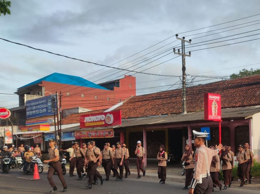PANGANDARAN – Satlantas Polres Pangandaran rutin memperkuat personel di titik rawan kemacetan, khususnya pada jam sibuk pagi hari pelajar SMKN 1 Pangandaran ramai menyebrang jalan. Kegiatan Gatur Lalin (Pengaturan Lalu Lintas) ini bertujuan menjamin rasa aman dan melancarkan mobilitas pengguna jalan, terutama pelajar yang berangkat ke sekolah.