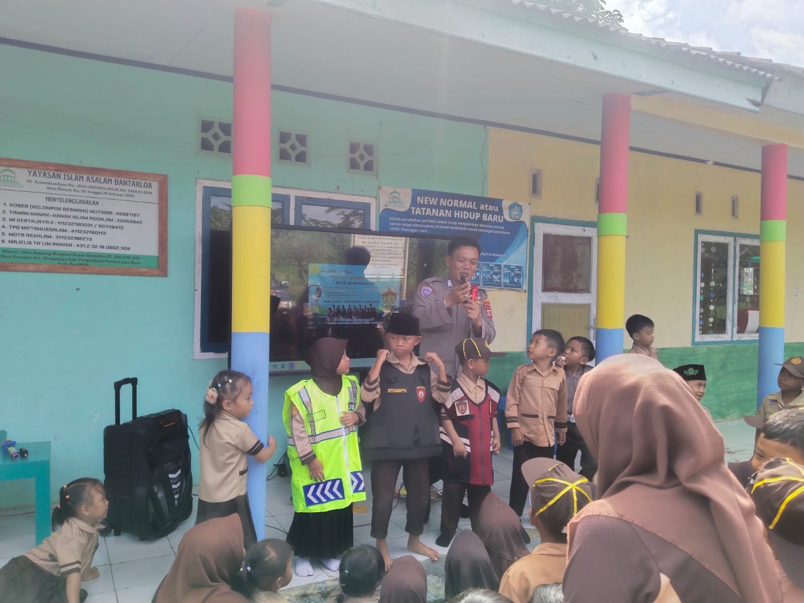 Dalam suasana yang penuh keceriaan, Bripka Hendryana mengenalkan berbagai jenis rambu lalu lintas serta perlengkapan berkendara kepada anak-anak usia dini tersebut. Petugas menggunakan metode interaktif agar para siswa mudah memahami arti warna lampu lalu lintas serta pentingnya menggunakan helm demi keselamatan saat berada di jalan raya.