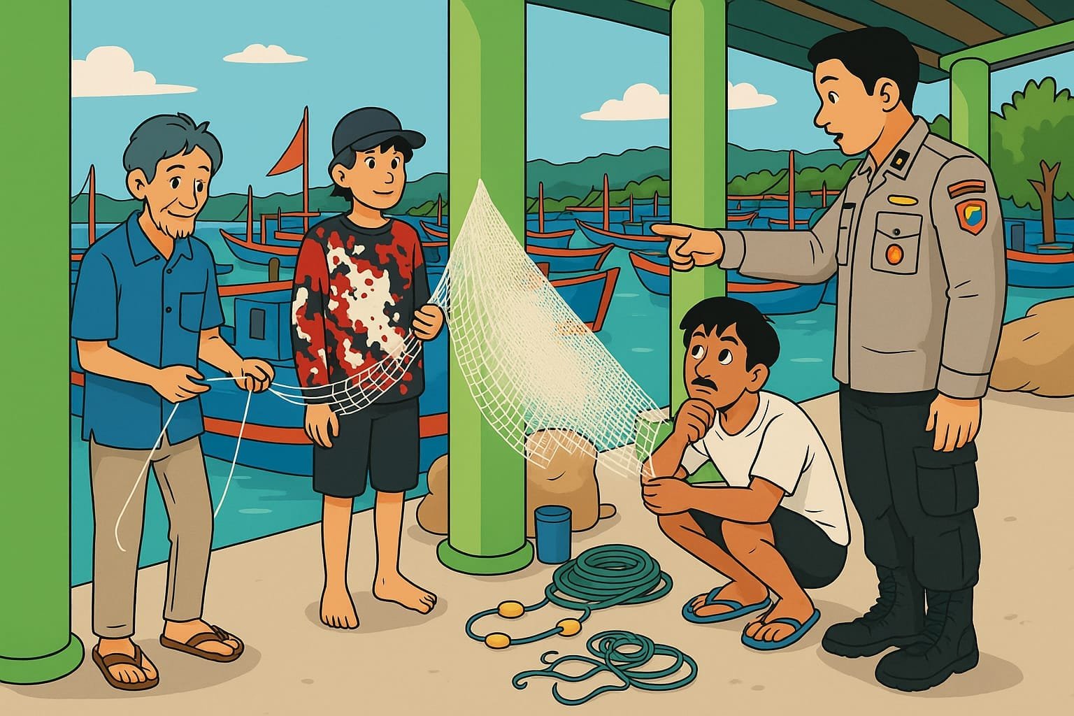 “Kami imbau agar para nelayan tidak memaksakan diri melaut ketika cuaca tidak mendukung. Gelombang tinggi dan angin kencang bisa membahayakan keselamatan jiwa. Jika memang harus melaut, pastikan membawa alat keselamatan seperti pelampung, serta alat komunikasi yang dapat digunakan dalam kondisi darurat,” ujar Brigadir Fanji kepada para nelayan.
