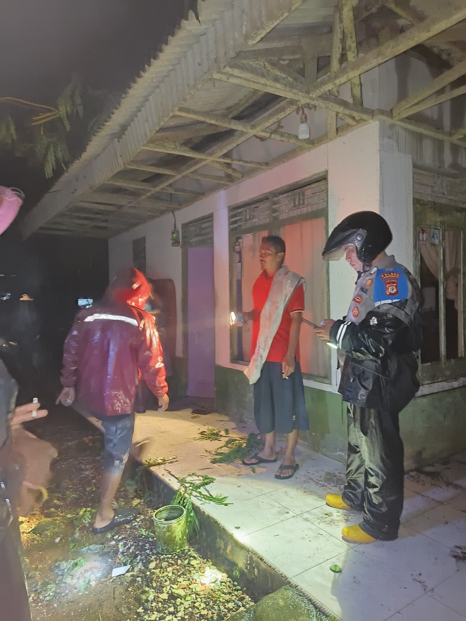 Bripka Nandang yang turun langsung ke lokasi, memastikan kondisi kesehatan warga terdampak serta memeriksa keamanan di sekitar lokasi pohon tumbang untuk menghindari potensi bahaya susulan.