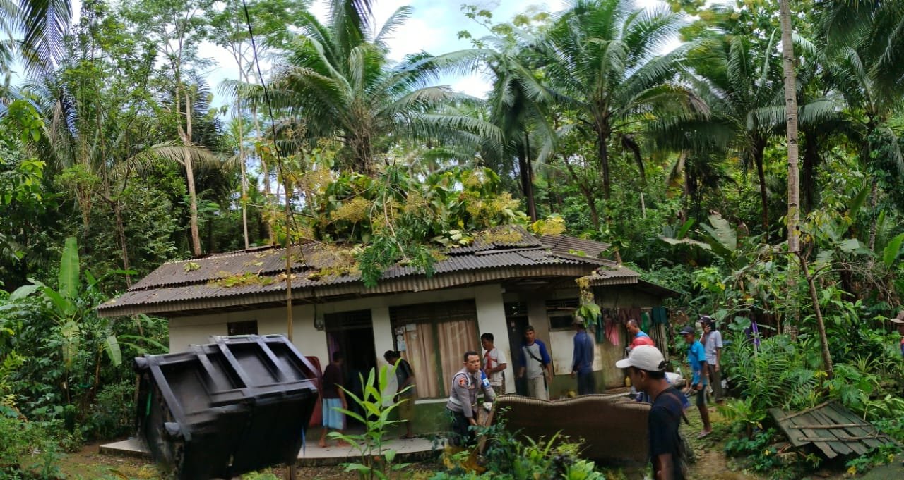 Petugas Polsek Sidamulih, Bripka Nandang, yang turun langsung ke lokasi bencana, segera melakukan pengecekan, membantu evakuasi, serta bergotong royong bersama warga membersihkan puing-puing pohon dari rumah korban.