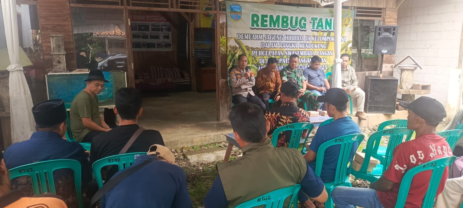 Pangandaran – Jajaran Polres Pangandaran bersama Dinas Pertanian Kabupaten Pangandaran dan Kelompok Tani Hutan (KTH) Rimba Nusantara melaksanakan kegiatan sosialisasi Demonstration Farm (Denfarm) jagung hibrida di Sekretariat KTH Rimba Nusantara, Dusun Cinangka RT 03 RW 01, Desa Panyutran, Kecamatan Padaherang, Jumat (24/10/2025).