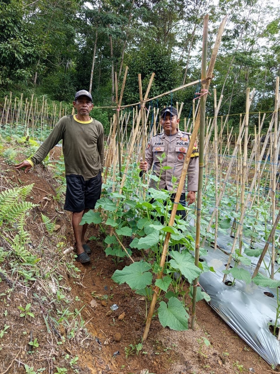 Kegiatan tersebut dilakukan dengan mengunjungi Sdr. Yogi, seorang petani timun setempat, dalam rangka memastikan situasi aman dan kondusif serta mendukung program ketahanan pangan yang dicanangkan oleh Polri.