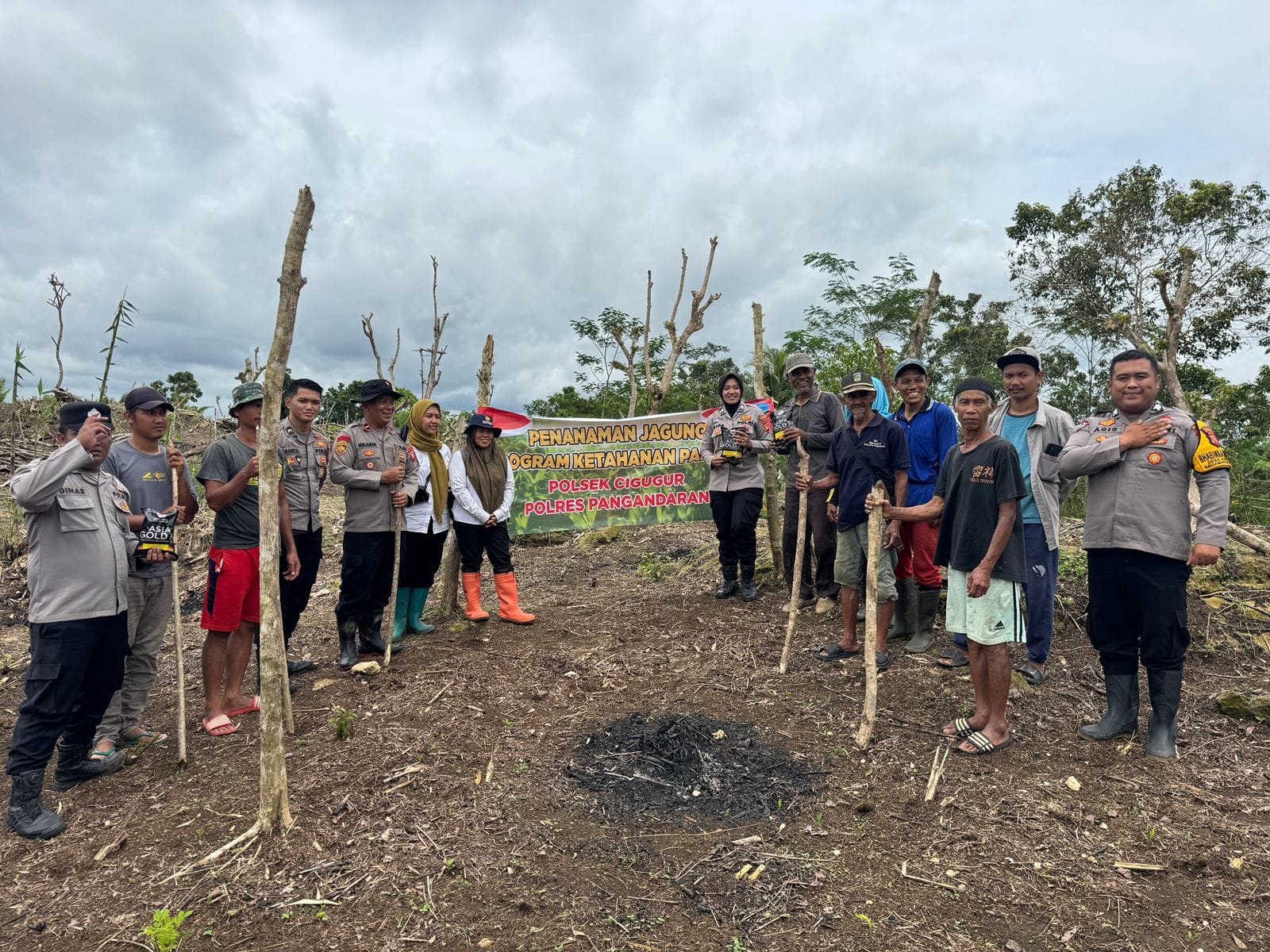 Pangandaran, 05 November 2025 – Dalam rangka mendukung program ketahanan pangan, Bhabinkamtibmas Polsek Cigugur, Brigadir Agis Gustawan, bertindak sebagai operator ketahanan pangan melaksanakan pendampingan penanaman jagung di Blok Saparantu, Dusun Sempurjajar, Desa Kertajaya, Kecamatan Cigugur. Kegiatan berlangsung pada Rabu pagi pukul 10.00 WIB hingga selesai.