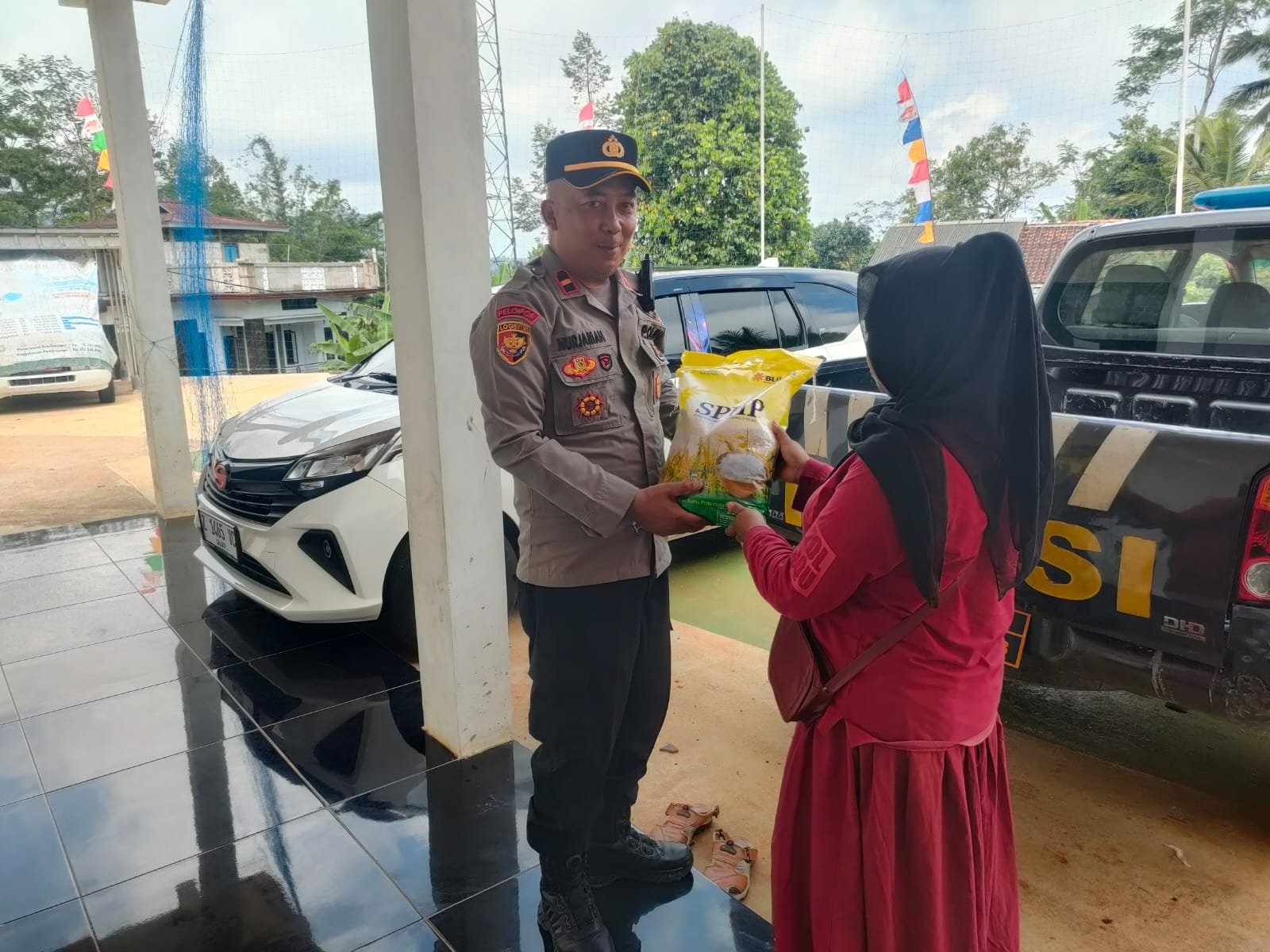 Kapolsek Cigugur, IPDA Nurjaman, didampingi oleh anggota Polsek Cigugur, BRIPDA M. Zain Abdussalim, turut hadir langsung di lokasi untuk memastikan proses pendistribusian berjalan lancar, tertib, dan sesuai sasaran. Kehadiran petugas kepolisian juga memberikan rasa aman dan nyaman kepada masyarakat yang hadir dalam kegiatan tersebut.