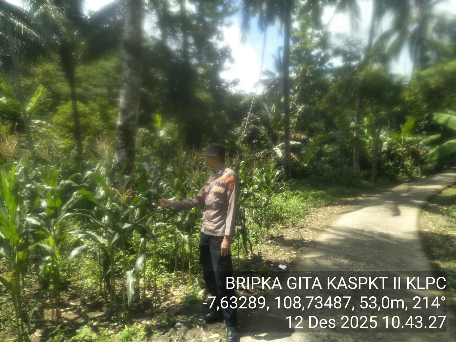 Pada Jum’at, 12 Desember 2025 pukul 10.30 WIB, Bhabinkamtibmas Desa Cibuluh Bripka Gita Prisma melaksanakan kegiatan monitoring pertumbuhan jagung hibrida di Blok Babakan, Dusun Cibuluh II, Desa Cibuluh, Kecamatan Kalipucang, Kabupaten Pangandaran. Kegiatan ini dilakukan sebagai bentuk pendampingan kepolisian terhadap masyarakat, khususnya kelompok tani yang sedang mengembangkan komoditas pertanian produktif.