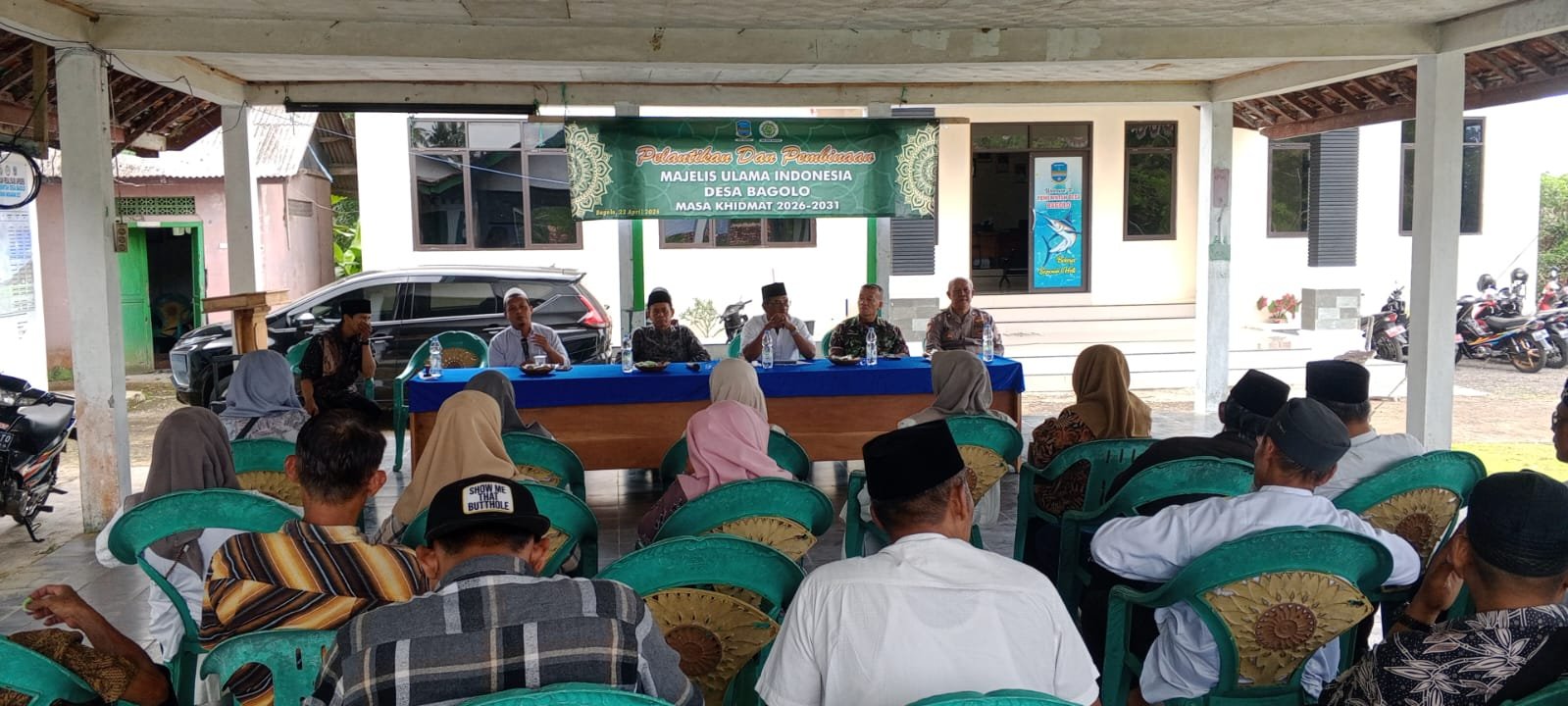 Bagolo – Bhabinkamtibmas Desa Bagolo, AIPTU Deni Suhendi, menghadiri kegiatan pelantikan dan pembinaan Majelis Ulama Indonesia (MUI) Desa Bagolo periode 2026–2031 pada Rabu, 22 April 2026, pukul 08.00 WIB. Kegiatan tersebut berlangsung di Aula Desa Bagolo dengan dihadiri oleh tokoh masyarakat, tokoh agama, serta perangkat desa setempat.