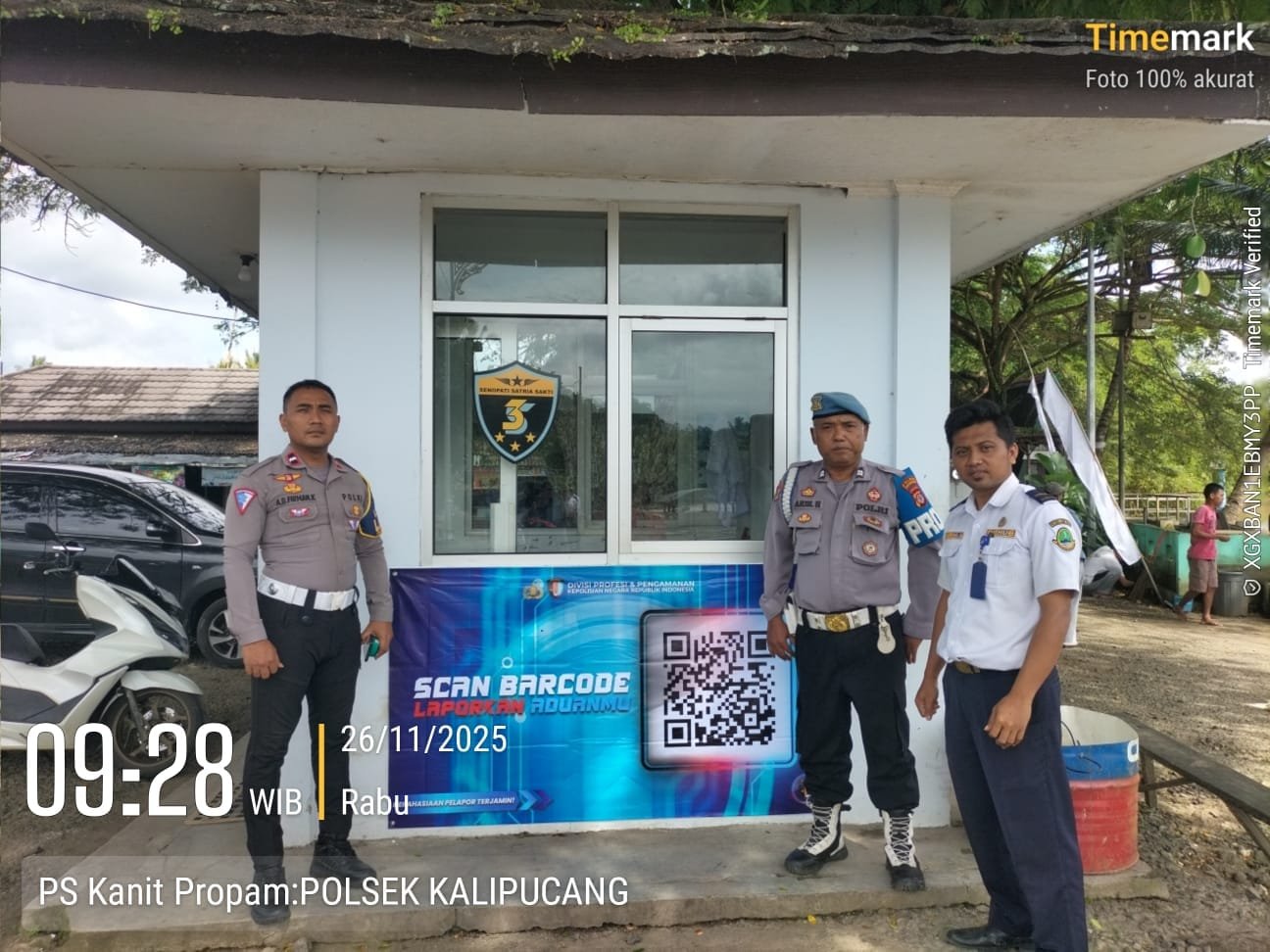 Polsek Kalipucang, Polres Pangandaran, Polda Jabar memasang banner layanan Scan Barcode Aduan Online Propam sebagai upaya memudahkan masyarakat dalam menyampaikan laporan tanpa harus datang langsung ke kantor polisi. Kegiatan ini dilakukan pada Rabu, 26 November 2025, di salah satu pos pelayanan Polsek Kalipucang.