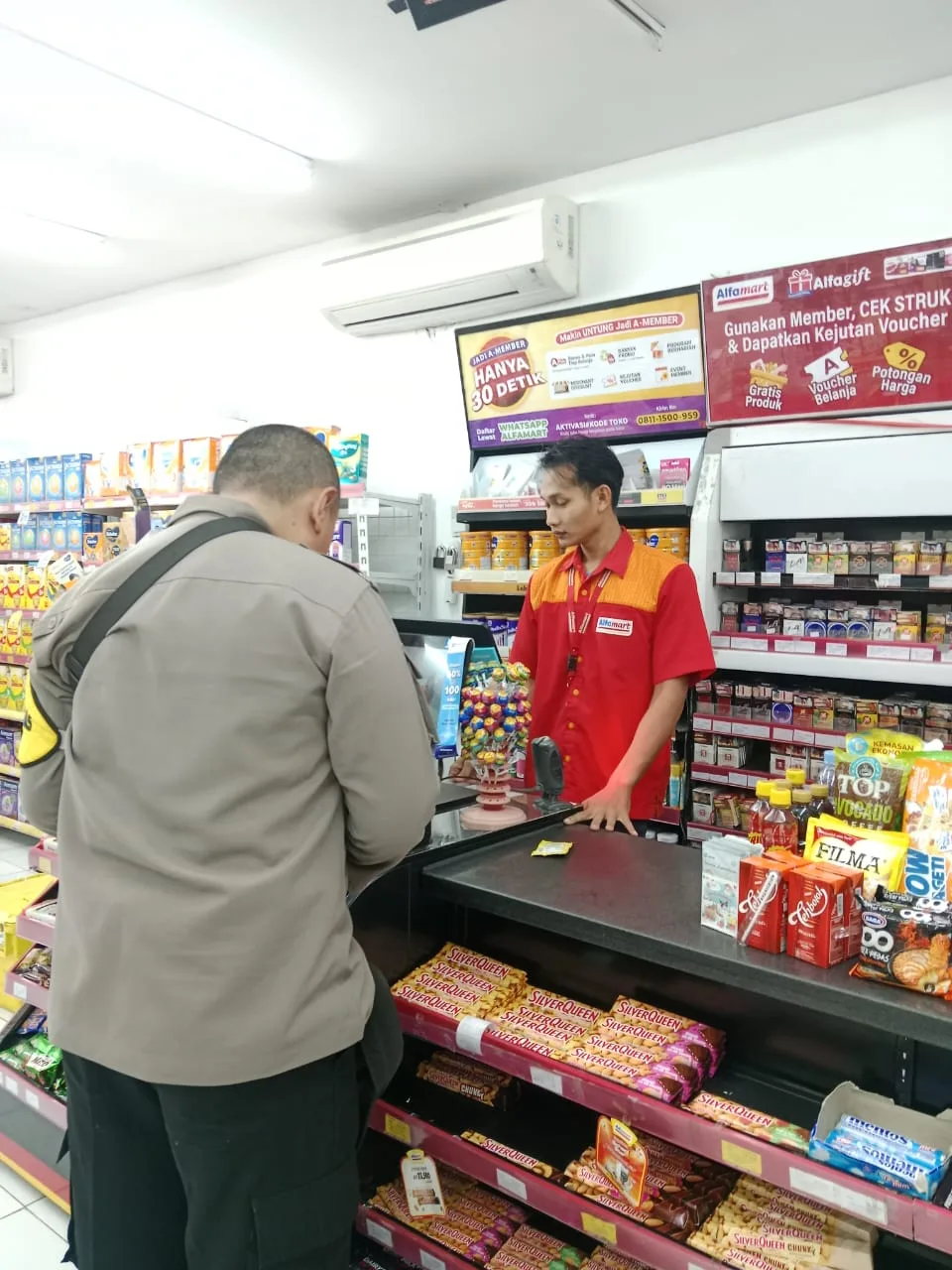 Bhabinkamtibmas yang hadir dalam kegiatan ini menyampaikan imbauan kepada karyawan Alfamart dan masyarakat yang sedang berbelanja. Pesan yang disampaikan meliputi kewaspadaan terhadap potensi gangguan kamtibmas, seperti pencurian dan peredaran uang palsu, serta pentingnya menjaga kebersihan dan ketertiban di area minimarket.