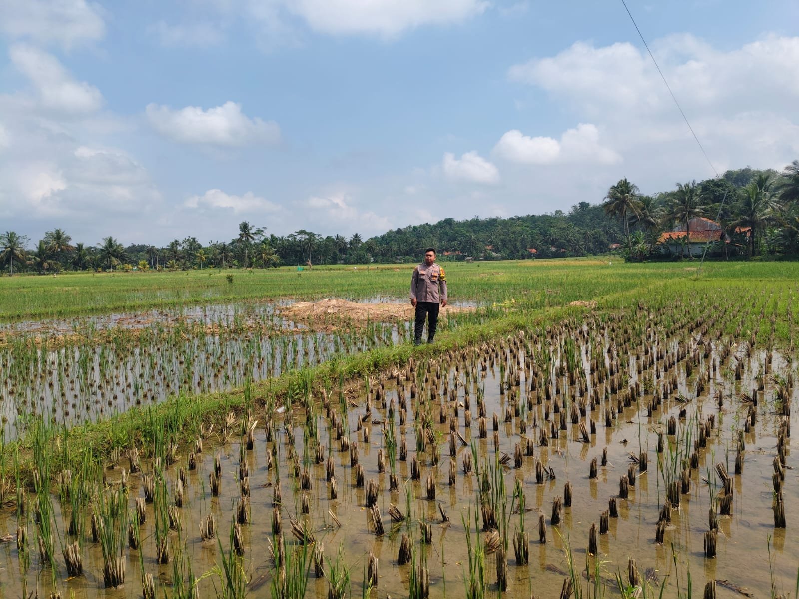 Pengecekan dilakukan pada pukul 09.25 WIB di lahan seluas 3.500 meter persegi yang termasuk dalam program Lahan Bantuan Swadaya (LBS) dan non-LBS. Dari hasil pengamatan, sebagian lahan LBS belum dapat ditanami bibit jagung karena tingginya curah hujan yang menyebabkan lahan terendam air, sehingga berpotensi gagal tanam. Selain itu, sebagian lahan juga sudah ditanami padi oleh petani setempat.