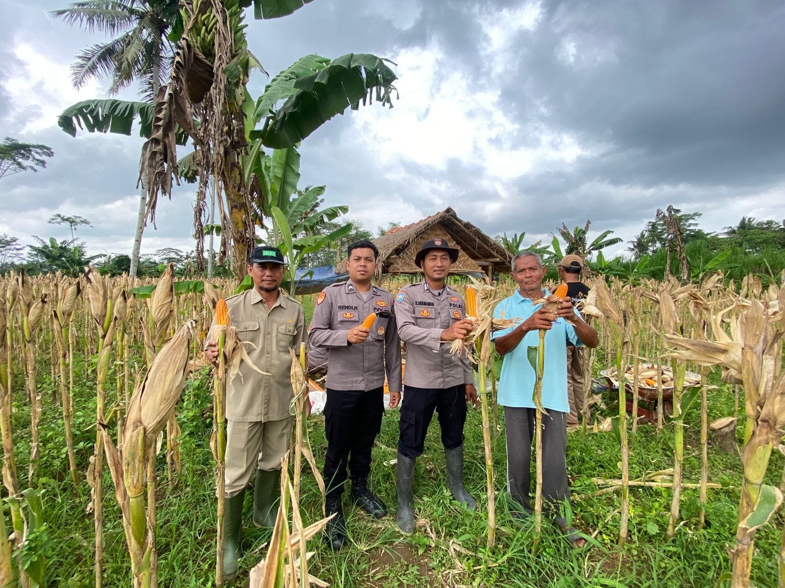 Pangandaran – Dalam rangka mendukung program ketahanan pangan nasional, Polsek Padaherang Polres Pangandaran bersama Balai Penyuluh Pertanian (BPP) Kecamatan Padaherang melaksanakan pendampingan kegiatan panen jagung di lahan Non LBS Desa Sukanagara Kecamatan Padaherang Kabupaten Pangandaran, Selasa (21/10/2025).