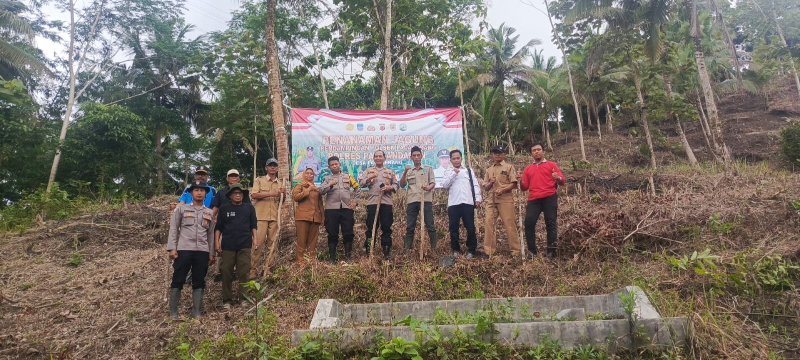 Pangandaran, 27 Oktober 2025 — Dalam rangka mendukung program ketahanan pangan nasional, Polsek Padaherang Polres Pangandaran melaksanakan pendampingan kegiatan penanaman jagung hibrida di lahan non LBS milik Pemerintah Desa Padaherang, Kecamatan Padaherang, Kabupaten Pangandaran, pada Senin (27/10/2025).