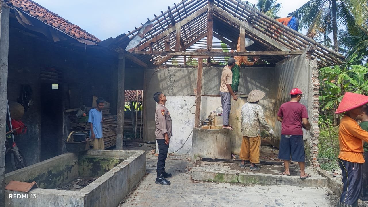 Pangandaran — Polsek Padaherang mendatangi lokasi rumah warga yang roboh akibat hujan deras disertai angin kencang di Dusun Julang, Desa Maruyungsari, Kecamatan Padaherang, Kabupaten Pangandaran, Selasa (4/11/2025) dini hari.