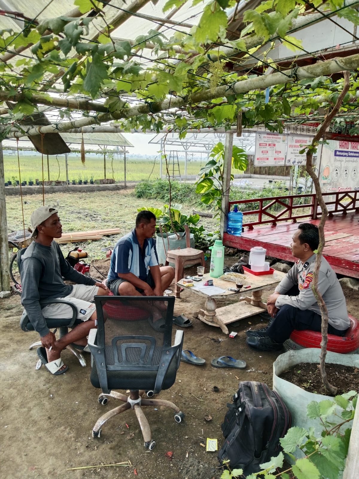 Pangandaran – Dalam upaya memperkuat sinergitas antara Polri dan masyarakat di bidang pertanian, Polsek Padaherang melaksanakan kegiatan sambang dan silaturahmi dengan Ketua Kelompok Tani Taruna Tani Mekar Bayu serta Kelompok Tani Bedah Rahayu di Dusun Cihideung, Desa Ciganjeng, Kecamatan Padaherang, Kabupaten Pangandaran.