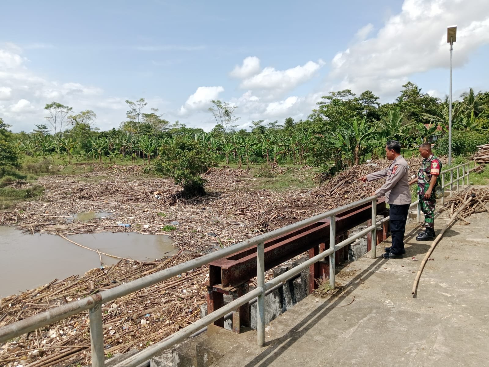 Dalam pengecekan tersebut, aparat memantau kondisi klep dan aliran air yang terganggu akibat tumpukan sampah kayu. Hambatan pada klep dikhawatirkan menahan laju air dan dapat memicu banjir di beberapa titik permukiman warga. Mengingat tingginya curah hujan di wilayah Padaherang dalam beberapa hari terakhir, kegiatan mitigasi dilakukan sebagai langkah antisipasi dan pencegahan dini.