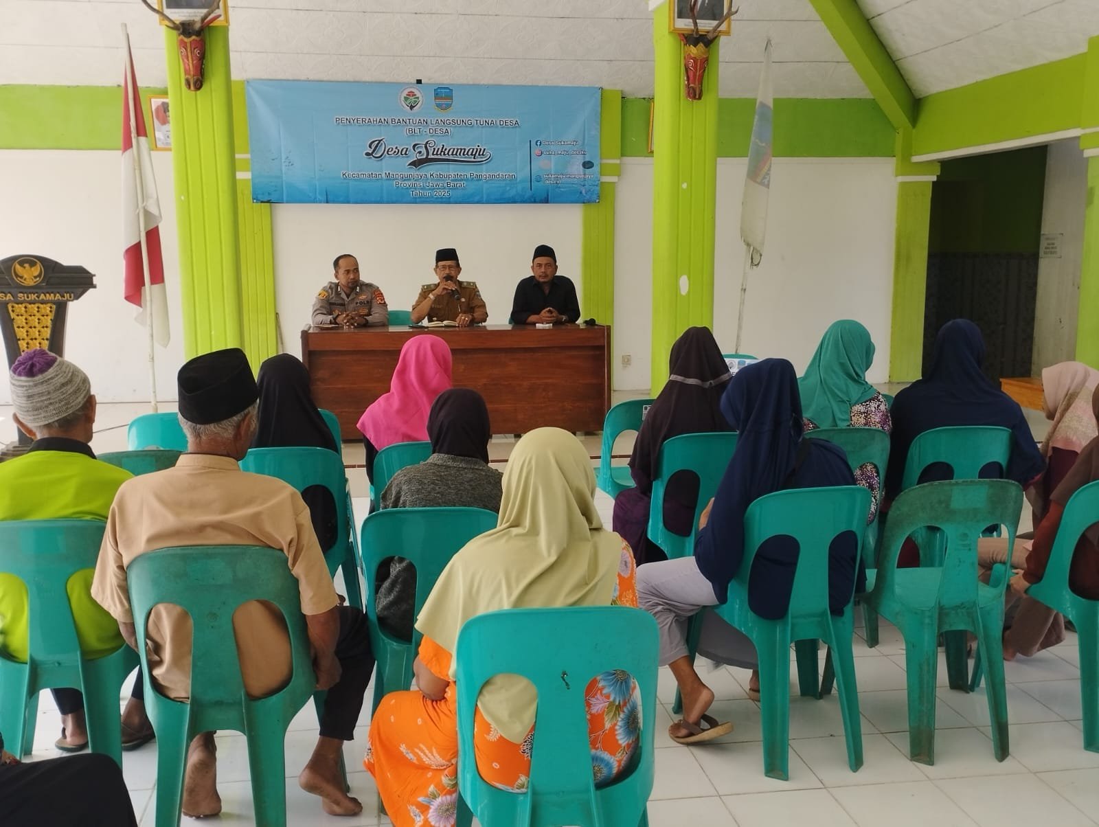 Pangandaran – Bhabinkamtibmas Desa Sukamaju, Bripka Irvan Ganda Sismaya, menghadiri kegiatan penyaluran Bantuan Langsung Tunai Dana Desa (BLT-DD) periode April hingga Juni 2025 yang dilaksanakan pada Senin, 7 Juli 2025, pukul 09.00 WIB bertempat di Kantor Desa Sukamaju, Kecamatan Mangunjaya, Kabupaten Pangandaran.