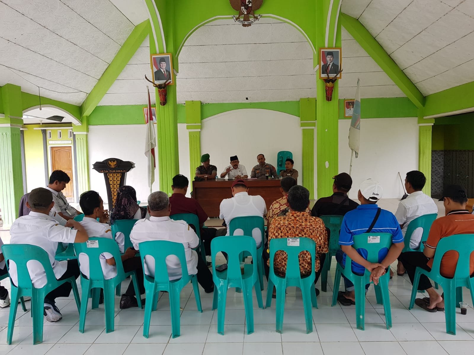 Kegiatan rapat dimulai pukul 10.30 WIB bertempat di Kantor Desa Sukamaju, yang dihadiri oleh aparatur pemerintah desa dan tokoh masyarakat setempat. Dalam forum tersebut, BRIPKA Irvan menyampaikan pesan-pesan kamtibmas agar seluruh elemen masyarakat bersama-sama menjaga keamanan dan ketertiban lingkungan (Harkamtibmas).