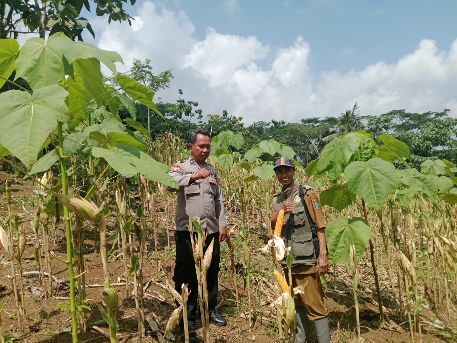 Kegiatan monitoring tersebut dilaksanakan sekitar pukul 10.10 WIB hingga selesai. Bhabinkamtibmas Desa Bojongsari, Aipda Indra Purmaya, S.H., turun langsung ke lokasi untuk melihat perkembangan tanaman jagung yang saat ini memasuki tahap pemangkasan pucuk daun menjelang masa panen.