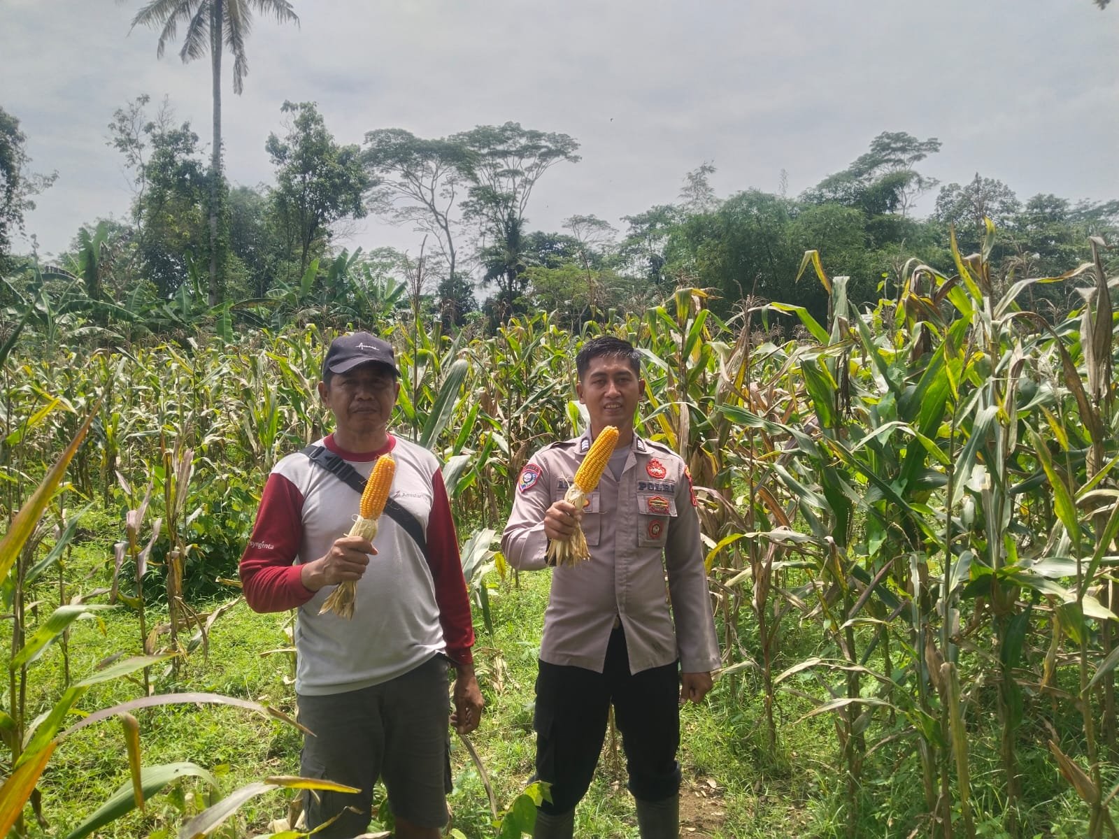 Bhabinkamtibmas Polsek Padaherang Monitoring Hasil Panen Jagung di Desa Mangunjaya