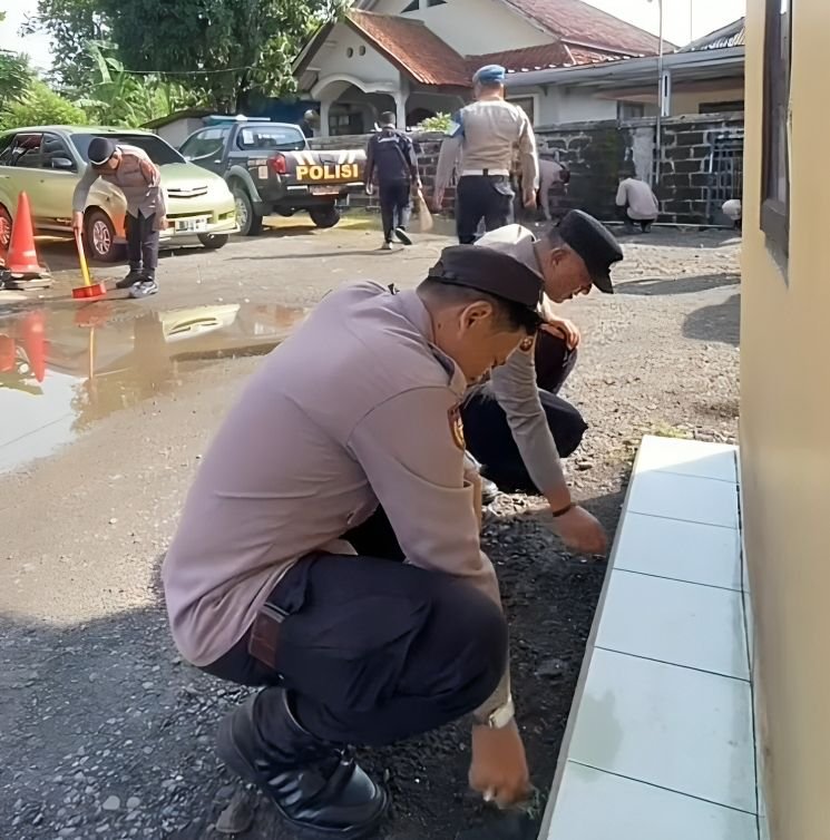 Pangandaran – Personel Polsek Padaherang melaksanakan kegiatan bersih-bersih lingkungan Mako yang dipimpin langsung oleh Kapolsek Padaherang AKP Abdurahman di halaman Mako Polsek Padaherang, Kamis (5/2/2026) pukul 08.30 WIB.