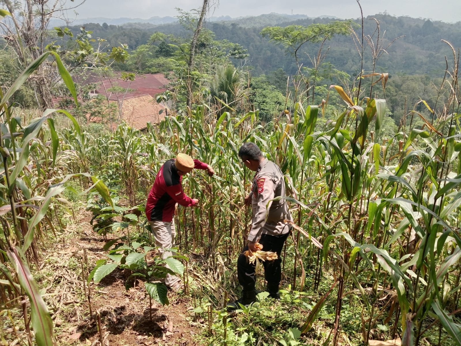 Pangandaran – Kapolsek Padaherang, AKP Abdurahman, bersama anggota Polsek Padaherang dan Tim Pelaksana Kegiatan (TPK) Desa Panyutran, melaksanakan pengecekan langsung ke lokasi lahan jagung yang akan segera dipanen di Dusun Cinangka, Desa Panyutran, Kecamatan Padaherang, Kabupaten Pangandaran, Kamis, 4 September 2025.